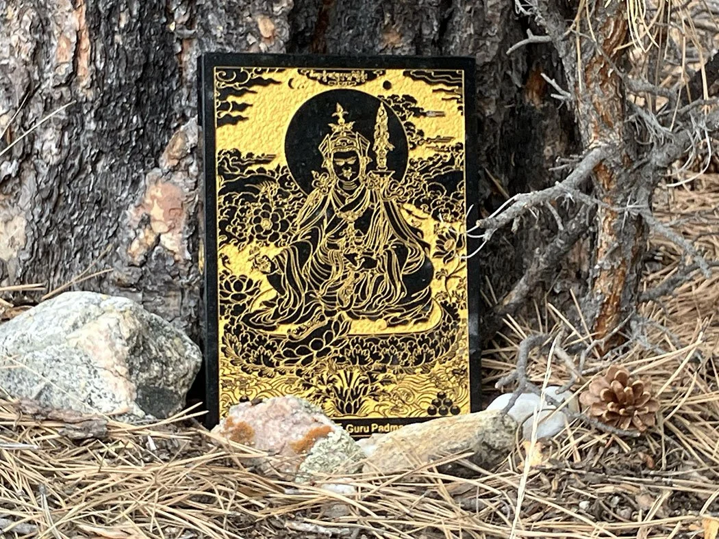 Three recent gifts deserve mention; they come from very different parts of the galaxy. The first is a handsome stone incised with a gold image of Padmasambhava, the celebrated 8th century Indian teacher, revered for his pivotal role in introducing Buddhism to Tibet. This gift was part of a global effort initiated by Vanessa Wang, a Chinese philanthropist, who has overseen the placement of thousands of these beautiful steles all over the world, with the intention of pacifying the increasing chaos of humanity. In keeping with the recommendations, the stone is placed outside at Mountain Water at the base of an ancient ponderosa pine. Read more about this initiative at Awam Lhasa Ling, a Buddhist Group in Poland.